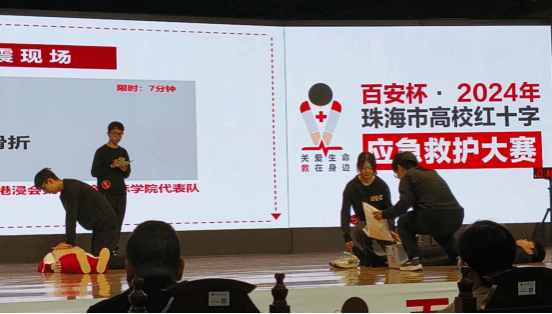 为普及急救知识,传递人道主义精神,鼓励更多人关爱生命、参与急救行动。2024年12月21日,由珠海市红十字会与珠海市教育局联合主办的“百安杯·2024年珠海市高校红十字应急救护大赛”在珠海科技学院顺利举行。由张慧老师、侯汉庆老师带领的UIC医疗健康志愿服务队荣获三等奖,并获得由市红十字会常务理事单位珠海威泓医疗科技有限公司捐赠价值6万元的AED及急救包等急救器材设施一批,用于校园应急救护保障。