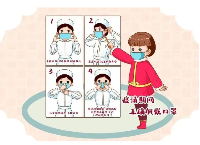 佩戴口罩期间不要将口罩拉至下巴处、挂在耳朵一侧。